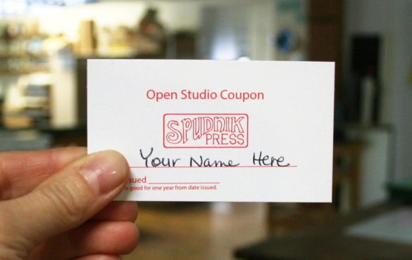 Combine a membership with coupons for Open Studio sessions will allow artists time to complete a full project at Spudnik and become familiar with the studio before becoming a keyholder, taking a class, or continuing to print at Open Studio sessions.