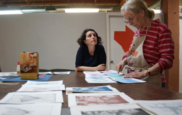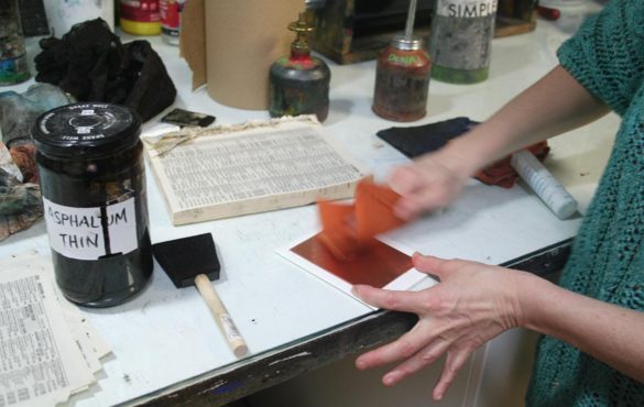 Specifically, the class will begin by reviewing basic plate making techniques such as degreasing and filing plates, applying ground, mark making, etching, dry point and aquatinting. Moving on to printing press, students will deepen their understanding of inks, additives, and all-around best practices for inking and printing copper plates. Students will also have the opportunity to learn how to plan for and print multiple-plate images. In addition to plenty of demonstrations and hands-on time to work, students will be able to consult with staff on plans for any current and planned print projects.