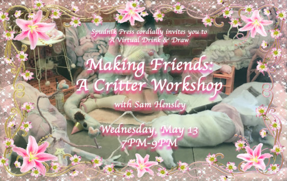 Join Sam Hensley for a fantastical night of world-building where you will make your very own new friends using any colorful materials you have on hand! Sam uses a curious, magical-thinking approach for “meeting” otherworldly critters, and brings these to life as drawings, prints, and even robots. Starting with writing and sketching exercises, Sam will show us how to enter a collaborative process with our new critter friends, imagining them as beings from other dimensions who want to share with us their hopes, fears, dreams, and needs. Taking our new friends seriously — but not ourselves! — we will draw (or paint or sculpt) them into a newly imagined reality, and make sure they have a welcoming home in our artworks.