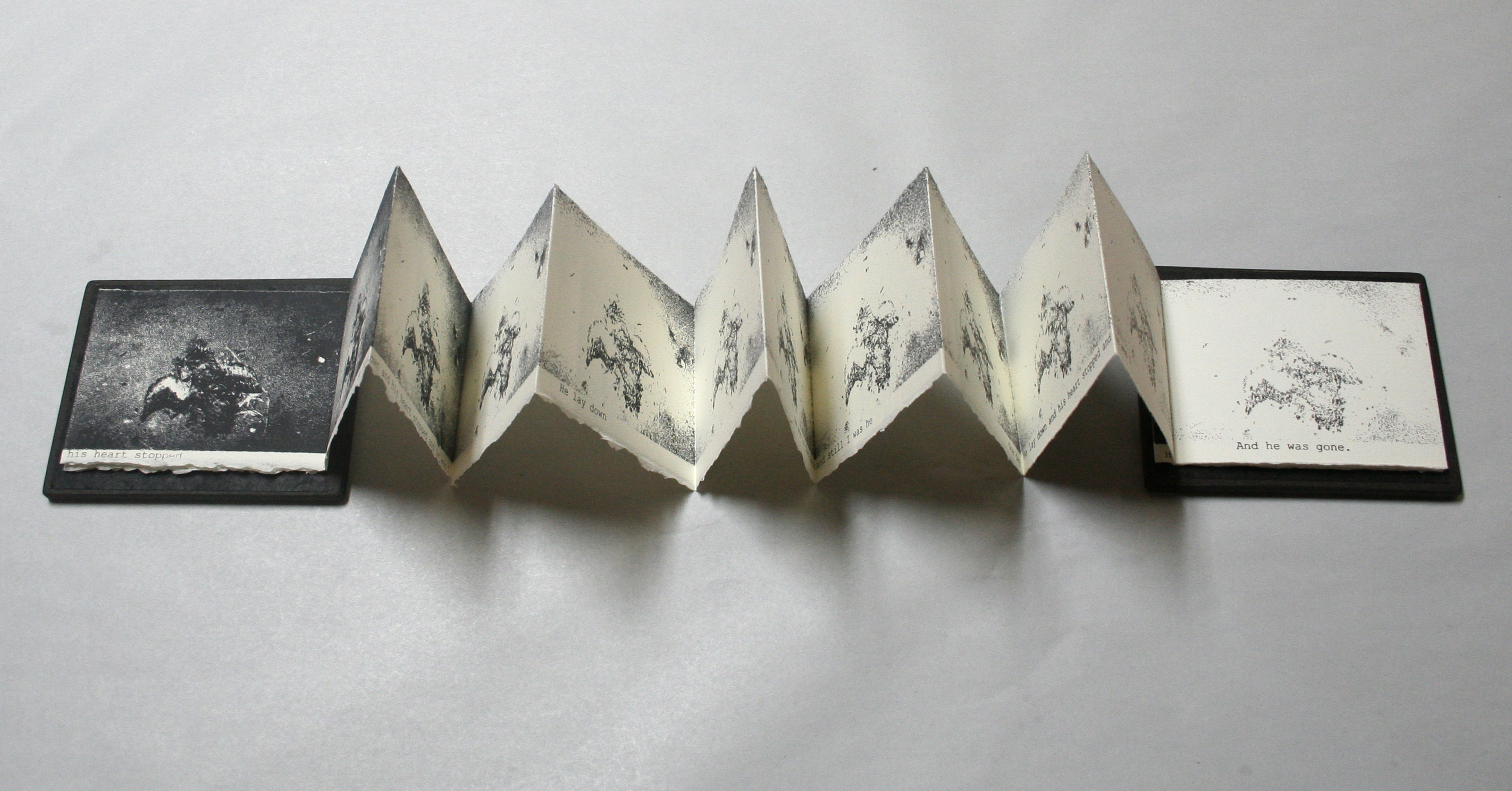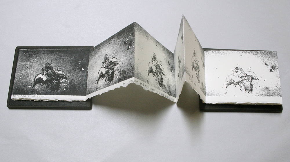 Previous Artist in Residence, Dutes Miller turned a makeshift booklet, constructed from taped together photocopies, into this gorgeous construction of hand-pulled prints.