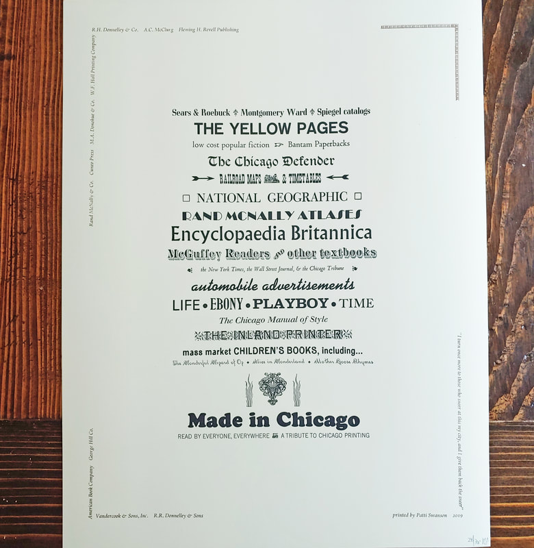 A print celebrating many of the culturally significant paper goods printed in Chicago throughout our history, and the printers who produced them.