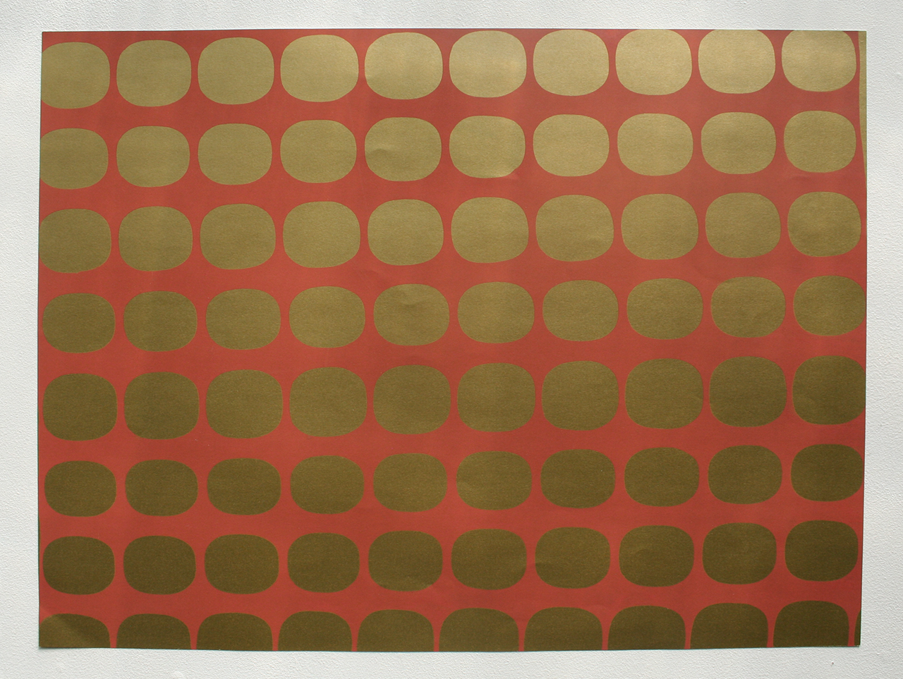 This piece was created while Jaclyn Jacunski was a Resident Artist in the spring of 2013. It is printed on bronze paper. The interplay between the metallic paper and the mat inks cause the print shift color from different angles. This print is numbered 3 of 4.