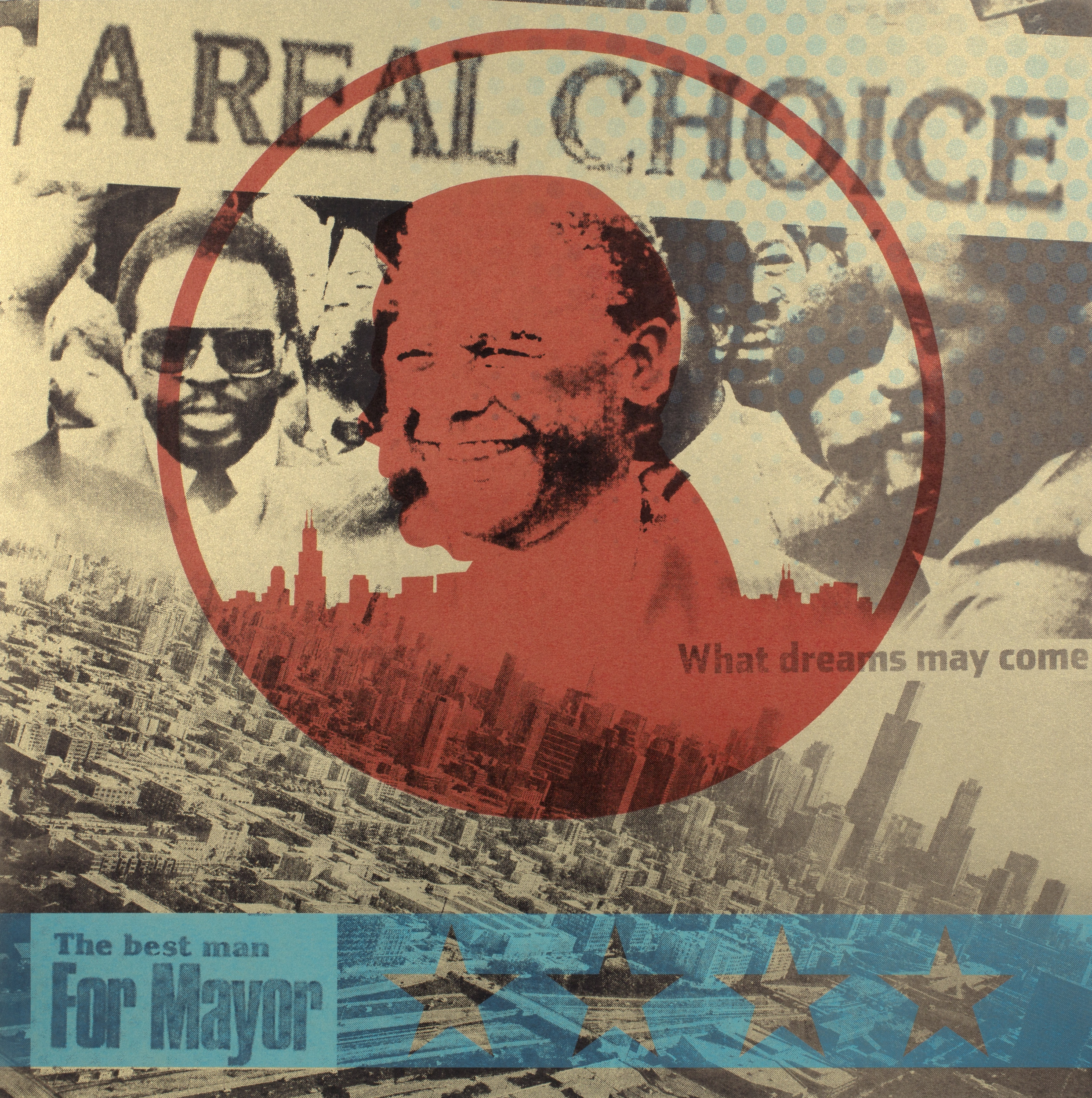 Dream Merchant is an exploration of Harold Washington’s mayoral campaigns in 1984 and 1987, revisiting his aspirations through memorabilia and ephemera materials. Commemorating the 30th anniversary of his passing, clips from campaign ads and sampled speeches are interwoven into a narrative collages of Washington’s vision and what he represented to the people of Chicago. In today’s socio-political climate, we consider Chicago’s cultural history in social activism and musical movements to reimagine the American Dream.